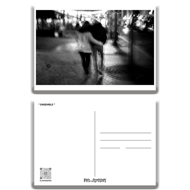 Découvrez cette carte postale artistique en noir et blanc, capturant l'essence mystérieuse des rues de Paris la nuit. Ce cliché abstrait, disponible en format A5, est une pièce unique qui ajoutera une touche artistique à votre collection.